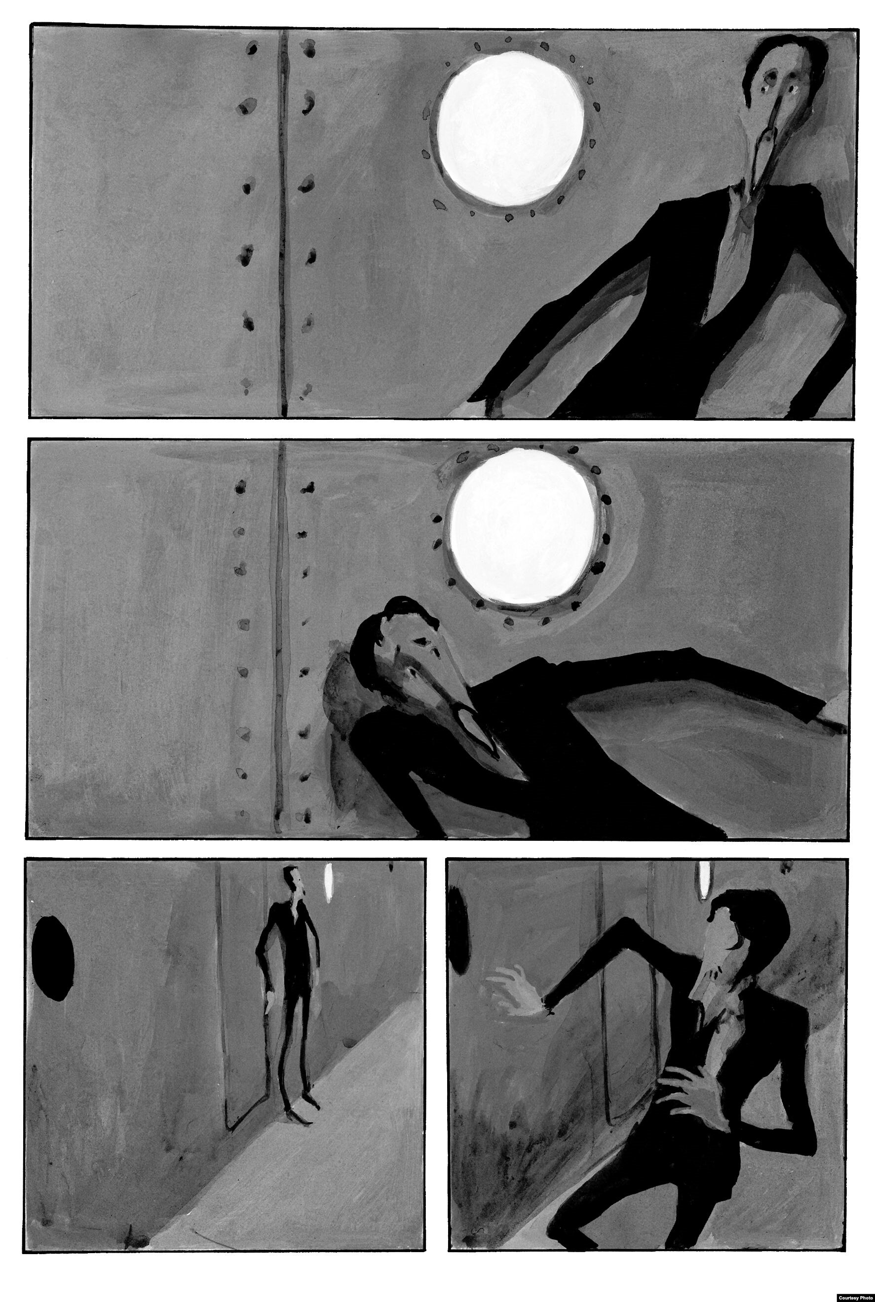 Паскаль Рабате: Да никак. Если ты делаешь что-то, что всем нравится, это значит, что ты сотворил нечто… теплое. Что касается наркотиков… у Толстого была одна только фраза – ''В течение нескольких дней Семен и Леша принимали кокаин''. Из этой фразы я сделала две главы в моих комиксах, потому что мне хотелось поговорить об органике, о плоти. И я для этого даже перечитал и переосмыслил ''Роман с кокаином'' Агеева. Он имел огромный успех, я с большим удовольствием его прочитал. Поэтому вот эти две главы, это мой такой маленький реверанс в сторону автора этого романа. И не только это. Есть, например, у меня сцена, когда стул и шкаф стоят в поле. Это тоже не из Толстого, это из Булгакова, ''Белая гвардия''. Там доктор рассказывает, как он приехал в повозке по вызову и увидел на холме стул и шкаф. Я нашел эту картинку настолько сюрреалистичной и отвязной, и одновременно волнующей… В общем, все пассажи и эпизоды, которые мне когда-то нравились, подпитывали историю Семена. В романе Толстого есть сцена, где Семен разбогател и вернулся в отель, где осыпал себя деньгами, шепча: ''Я богат… Я богат!''. Для своего времени Толстой весьма новаторски описывает эту сцену, но сейчас она уже воспринимается несколько кинематографично – если у кого-то появляется много денег, он себя ими осыпает. Я стал рисовать это и понял, что не хочу так, моя история потеряет силу и оригинальность. И тогда я взял идею у чешского писателя Грабала – его персонаж из ''Я обслуживал английского короля'' не бросает деньги, а аккуратно и методично выкладывает ими пол, и потом тихо созерцает это, и вытягивается на этом полу. Так делает и мой Семен.