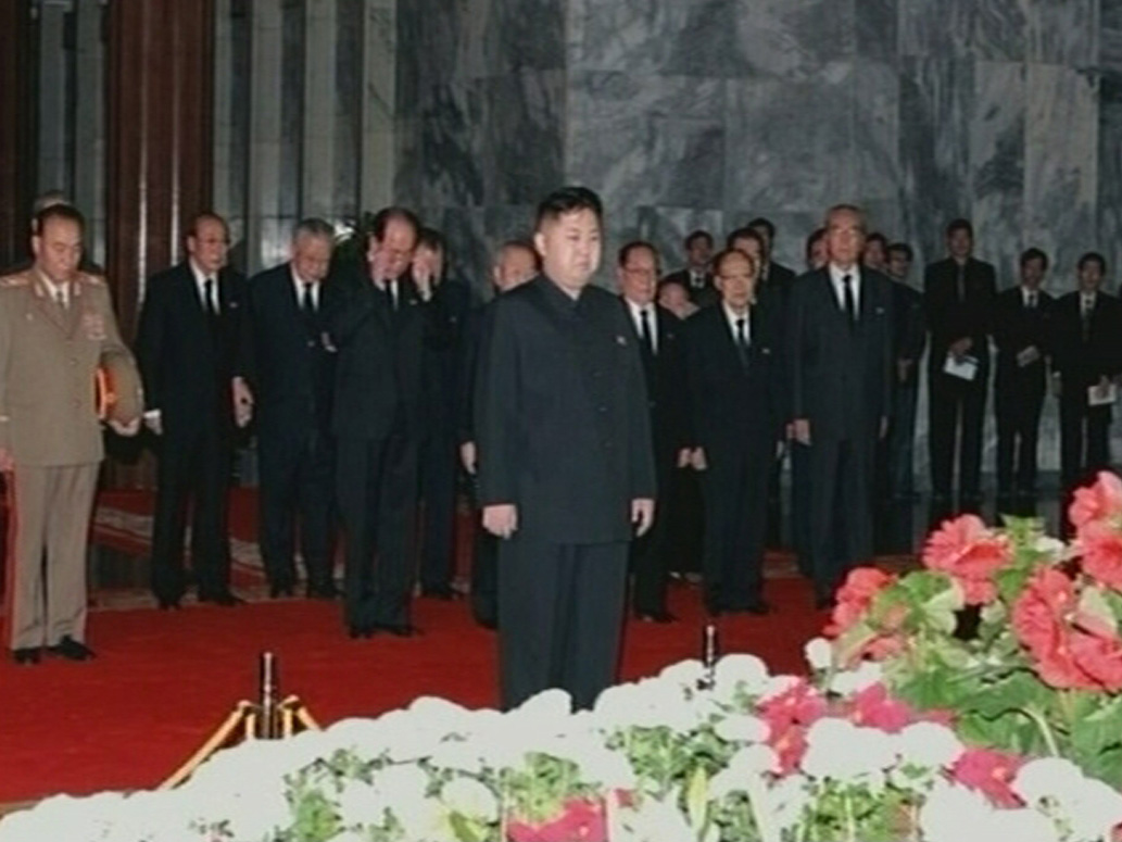 Накануне стеклянный гроб с его телом был выставлен в мавзолее, где в открытом саркофаге покоятся и забальзамированные останки отца Ким Чен Ира, основателя КНДР Ким Ир Сена.