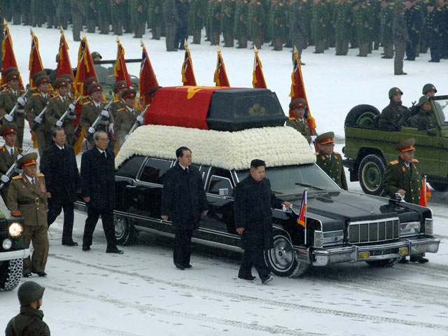На площадь перед мавзолеем новый лидер КНДР Ким Чен Ын вышел с непокрытой головой, шагая справа от катафалка с гробом своего отца - Ким Чен Ира. Левой рукой наследник держался за капот машины. За Ким Чен Ыном следовал заместитель председателя Госкомитета обороны Чан Сон Тхэк. Зарубежные наблюдатели считают его самым влиятельным человеком в новой пхеньянской иерархии.