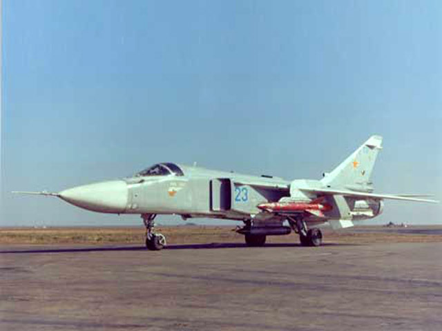 Су-24 — российский фронтовой бомбардировщик с крылом изменяемой стреловидности, предназначенный для нанесения ракетно-бомбовых ударов в простых и сложных метеоусловиях, днем и ночью, в том числе на малых высотах с прицельным поражением наземных и надводных целей, напоминает РИА "Новости".