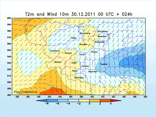 В воскресенье, в первый день Нового года, фронтальная волна с юго-запада принесет на юг и в центр региона усиление снегопада. На южной половине округа пойдет и мокрый снег, местами будет возможен гололед. Температура в течение суток будет меняться мало и составит от минус 1 до минус 6 градусов на севере и от минус 3 до плюс 2 на юге.