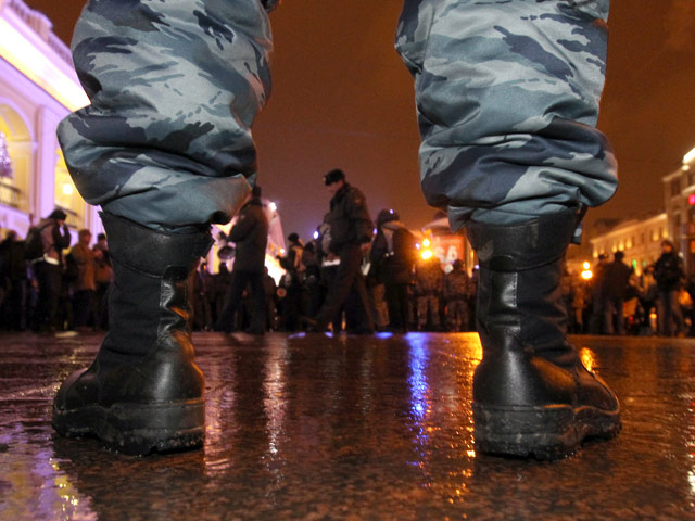 Сотрудники петербургской полиции в субботу вечером стянули дополнительные силы к Гостиному двору, где, как ожидается, пройдет несанкционированная акция оппозиционеров в защиту 31-й статьи Конституции.