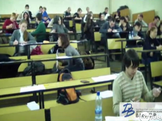 Видео в своем блоге разместил один из лидеров "Демвыбора" Игорь Драндин. "Мы приехали туда, в здание вуза вошли совершенно беспрепятственно, никакой охраны не было, "сборщики" подписей были совершенно уверены, что им ничего не грозит. В двух больших аудиториях на первом и третьем этажах сидели люди, как студенческого возраста, так и явно пенсионного".