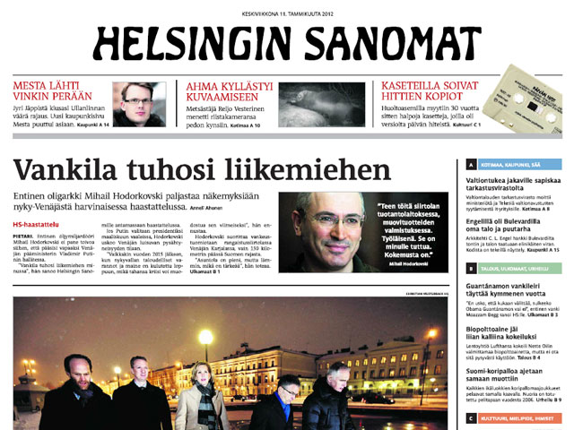 Бывший глава НК "ЮКОС" Михаил Ходорковский, осужденный на 13 лет за хищения нефти и отбывающий наказание в колонии карельского города Сегежи, дал интервью одному из ведущих финских изданий Helsingin Sanomat. Перевод разговора бывшего олигарха с журналистами приводит сайт защитников Ходорковского и Платона Лебедева.