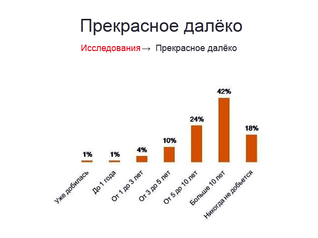 Примечательно, что 18% респондентов ответили, что Россия никогда не добьется благосостояния.