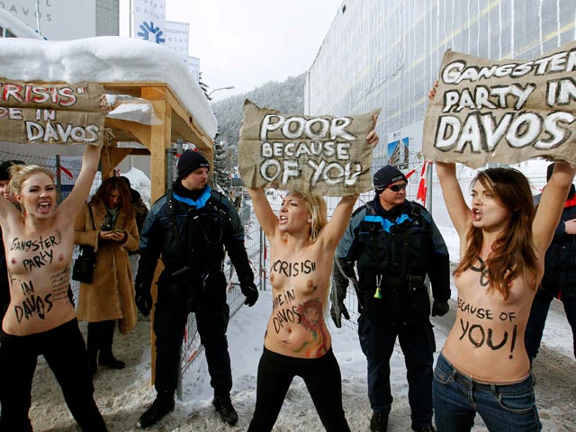 Активистки FEMEN украсили полуголым протестом форум в Давосе