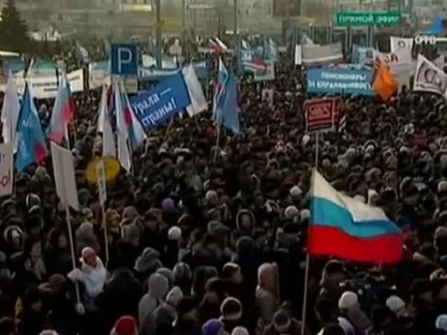 Одним из самых колоритных стал выход на сцену депутата Госдумы от "Единой России", токаря шестого разряда Валерия Трапезникова, которого, как выяснил журнал Forbes, катают по стране в составе агитационной бригады премьер-министра на специально зафрахтованном за деньги налогоплательщиков бизнес-джете Bombardier CRJ200 "люксовой комплектации". Рабочий гневно обрушился с обвинениями в адрес участников акции протеста на Болотной площади, обозвав их "козлами", но никакой поддержки коллеги по цеху ему не выразили.