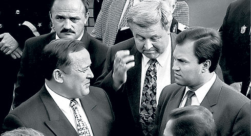 | (3) На протяжении всей карьеры Володин держался рядом с первыми лицами: будь то губернаторская лыжня (1, 2) — 1998 г. или съезд правящей партии (3) — 2008 г. |