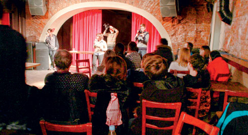 Нажмите, чтобы увеличитьМастерская Кузница волонтеров — «Мастерская протестных действий»: первые собрания креативщиков после Болотной инициировала Маша Гессен, главный редактор журнала «Вокруг света». Поначалу они проходили в клубе «Мастерская» (отсюда и название вечеров), но это место быстро оказалось под пристальным вниманием правоохранительных органов. Теперь собираются в одном из залов кафе-клуба Zavtra на Сретенке. Все волонтеры пришли через интернет, оповещения о встречах публикуются на страничке Facebook «Митинг за честные выборы. Акции и волонтерство». В Zavtra есть все необходимое: стулья в несколько рядов, человек на 50, столики, импровизированная сцена с микрофонами, бар для курящих. У официантов можно заказать еду и напитки. Обстановка творческая и неформальная.