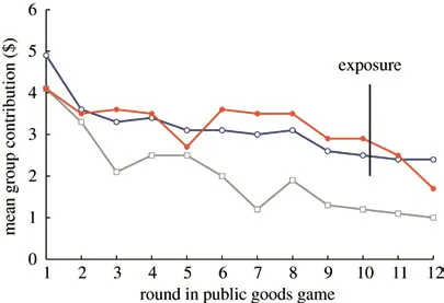 Итоги игры подводили после десятого раунда, но всего-то их — двенадцать, и в двух последних взносы участников уменьшились в контрольных группах и в «группах позора», участниками которых двигала только боязнь дурной репутации. Но студенты из «групп почета» не страшились огласки, а платили за нее. И в этих группах сборы в одиннадцатом и двенадцатом раундах остались на прежнем уровне, потому что щедрые игроки хотят поддержать свою репутацию. Если средние взносы в двенадцатом раунде у анонимных студентов в группах почета и позора примерно равны ($0,33 и $0,34), то самые щедрые участники платили значительно больше — $0,55.