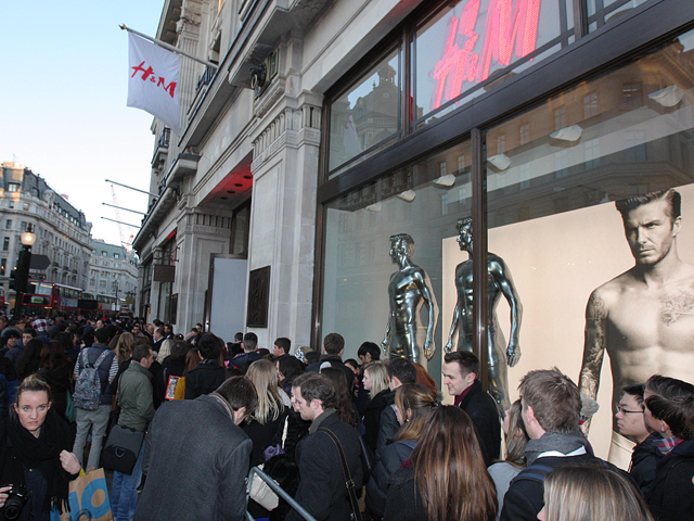 Презентация знаменитым футболистом и маркетинговым идолом новейшей истории Дэвидом Бекхэмом собственной коллекции нижнего белья в универмаге шведской компании Hennes & Mauritz вызвала настоящее столпотворение в центре Лондона.