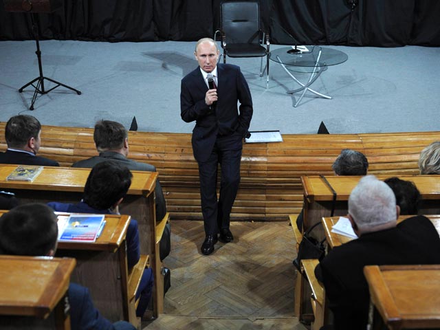 Главный кандидат в президенты России Владимир Путин именно в таком качестве встретился во вторник в московском Политехническом музее со своими доверенными лицами - это около 500 человек, которых накануне зарегистрировал Центризбирком. Ради законности этой встречи Путин-премьер вновь взял однодневный отпуск. 1 февраля он так же на один день оставлял свой пост, чтобы пообщаться с будущими наблюдателями на выборах. Хотя накануне обсуждал с политологами свои программные статьи и отпуска не брал.