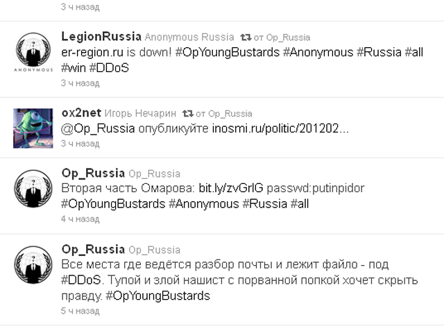 Ну а прежде эта группа анонимных хакеров взломала электронную почту уже целого ряда чиновников, включая главу Росмолодежи Василия Якеменко, его пресс-секретаря Кристины Потупчик, чиновника администрации президента Олега Хорохордина и других. Архивы с письмами активно распространяются в Сети. Группа "Вконтакте", где сортируются и обсуждаются письма, насчитывает уже около полутора тысяч участников. Twitter @Op_Russia, где хакеры публикуют новости и сообщения СМИ о себе, читают почти 10 тысяч подписчиков.