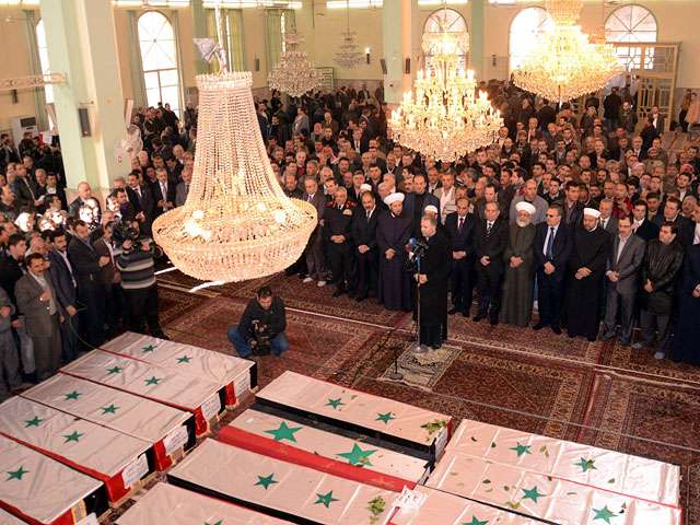 Похороны жертв последних терактов в Сирии прошли в воскресенье во втором по величине городе страны - Алеппо. Церемония прощания с погибшими прошла в мечети Аль-Иман, в зале которой были выставлены накрытые национальными флагами Сирии гробы с телами убитых. Проводить их в последний путь пришли тысячи жителей города.