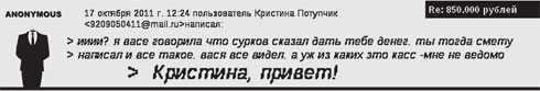 Владислав Сурков ушел в отставку, Василий Якеменко уходит, будущее Кристины Потупчик — туманноНашизмгейт. О том, что прокремлевское движение «Наши», ведомое главой Росмолодежи Василием Якеменко, располагает миллионными суммами на организацию митингов, акций, содержание боевых отрядов и армии интернет-пропагандистов, говорили все 7 лет, что существует движение. Однако только сейчас эти отрывочные факты нашли документальное подтверждение: некие хакеры, называющие себя Anonymous, вскрыли десятки почтовых ящиков всей верхушки Росмолодежи и выложили украденную информацию в сеть. За эпистолярными разоблачениями следит The New Times 25 млн рублей — цена одной не самой массовой акции прокремлевской молодежи. Из них 9 млн — на доставку активистов, 8 млн — на закупку барабанов, 5 млн списываются по туманной статье «организация мероприятия», еще 3 млн — на «агитацию». Такую барабанную акцию «Наши», например, провели 6 декабря на Триумфальной площади, куда намеревались выйти оппозиционеры, воодушевленные успехом митинга на Чистых прудах. Эти 25 млн — песчинка в море бюджета кремлевской молодежи.