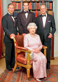 Три поколения королевской семьи: Чарльз, принц Уэльский (сын), принц Уильям (внук), Филипп, герцог Эдинбургский (муж). Снимок 2003 г. Елизавета II задала невероятно высокий уровень общественного служения для своих наследников, будущих королей — сына, принца Уэльского Чарльза, и внука, герцога Кембриджского Уильяма (в германизированной дореволюционной и советской традиции произношения — будущих королей Карла III и Вильгельма V). Их всегда будут сравнивать с их мамой и бабушкой, поэтому их царствования будут не самыми простыми. Но это когда-нибудь в будущем. А пока вновь звучит барабанная дробь, первый аккорд — и все поют «Боже, храни королеву». И только эта пожилая женщина в неизменной элегантной шляпе молчит, оглядывая мысленным взором свою такую долгую и такую уникальную жизнь.