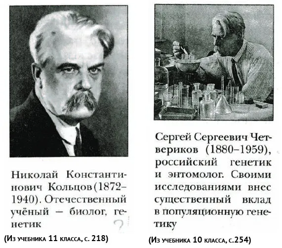 Мендель хороший, поэтому он «предложил принципиально новый метод изучения наследственности – гибридологический» (11-60), «специально вывел у гороха чистые линии» (11-61). И, конечно же, открыл закон единообразия гибридов первого поколения (11-64)… На самом деле гибридологический метод ввел в науку Кельрейтер в XVIII веке, и его широко применяли до Менделя; никаких чистых линий Мендель у гороха не выводил – он просто отобрал их из присланных ему сортов; и во всем мире историками науки давно признано, что закон единообразия гибридов был открыт до Менделя. Зато гипотезу чистоты гамет, по мнению авторов, сформулировал в 1902 году Бэтсон (11-68), хотя без нее Мендель просто не смог бы прийти к своим теоретическим обобщениям…