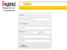 Используя новую функцию поисковика "Яндекс", пользователи смогут находить профили своих друзей в социальных сетях и в блогах. Для этого достаточно ввести имя человека. При необходимости запрос можно дополнить возрастом, местом жительства, местом работы или учебы.