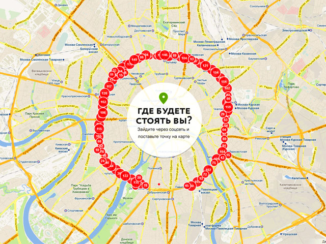 По приблизительным подсчетам устроителей флешмоба, чтобы замкнуть живое кольцо, на Садовом кольце должны собраться 34 тысячи человек. Каждый желающий может зайти на сайт 26feb.ru, разблокированный во вторник после DDoS-атак, чтобы отметить, на каком участке Садового кольца он планирует поучаствовать в ней.