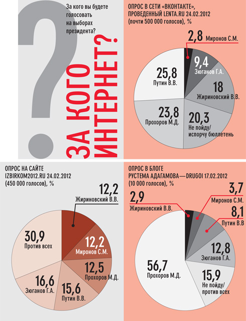 Если для вас важно, чтобы выборы не закончились одним туром, то выбирайте эту стратегию. Но я думаю, что тут важна поддержка позиции, а не человека. Выбирайте ту, которая, по вашему мнению, будет учитываться властью после выборов. Посмотрите программы кандидатов — предлагает кто-то из них реальную политическую реформу или нет. Если говорить о лозунгах, которые были на Сахарова и Болотной, то они отражены в программах Миронова и Прохорова». Именно так, по его признанию, поступил бы Михаил Ходорковский, если бы был на свободе.