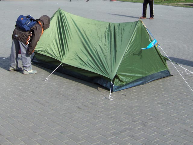 Оппозиционеры с такой "изоляцией" мириться не хотят и готовы на свой страх и риск выводить людей на выбранные ими площади, даже на Красную. Более того, теперь они готовят "палаточные акции" - по примеру "оранжевых революционеров" 2004 года с киевского Майдана. Со среды на Пушкинской площади Москвы начинается раздача палаток, которые можно разбить на любой ровной поверхности, включая бетон и асфальт. Вопреки слухам, один из лидеров протестов Алексей Навальный к организации "палаточного протеста" непричастен, но идею одобряет.