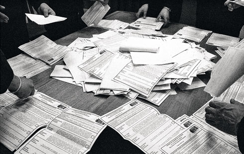 Стопки четырежды пересчитанных бюллетеней лежали на стульях, каждый из которых был именным. Стул с надписью «Жириновский» смотрелся вызывающе жалко.