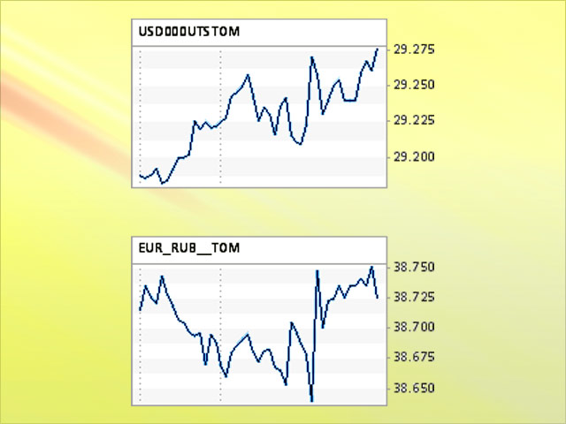 Средневзвешенный курс доллара США к российскому рублю со сроком расчетов "завтра" на торгах единой торговой сессии ММВБ по состоянию на 11:30 по московскому времени, на основе которого происходит процесс курсообразования доллара на следующий день, увеличился на 3,68 копейки и составил 29,2447 рубля, передает "Финмаркет".