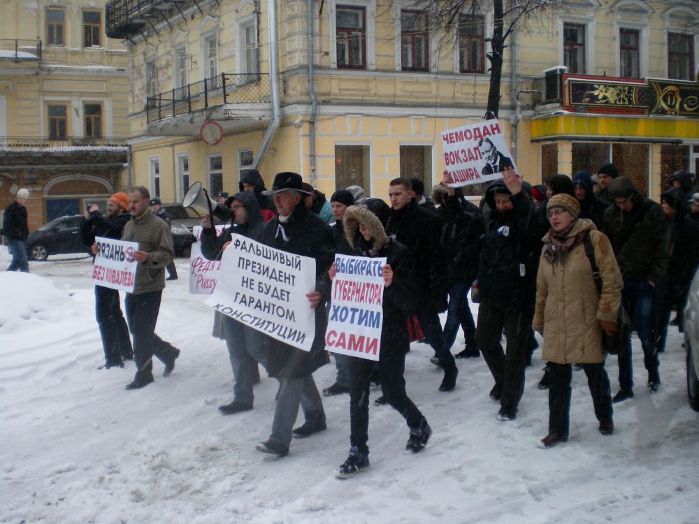 Участники рязанской "Стратегии-31" потребовали проведения всенародных выборов губернатора и мэра, а также отставки действующего главы региона Олега Ковалева и главы администрации Рязани Виталия Артемова. Митинг и шествие, в которых приняли участие десятки человек, состоялись в Рязани 31 марта.