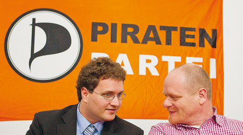 Себастьян Нерц (слева) и его заместитель по партии Бернд Шлёмер чувствуют себя под пиратским флагом весьма уверенноКурс на бундестаг На съезде в Оффенбахе, куда съехались 18 тыс. партийцев и сочувствующих со всей Германии (никаких выборов делегатов не было), «пираты» прямо заявили о своих федеральных амбициях. Сопредседатель «пиратов» всея Германии 29-летний Себастьян Нерц провозгласил: «Мы — не партия-однодневка, мы пришли в политику надолго». Он также уверен, что идеи «пиратов» притягивают классического либерального избирателя. И ссылается на некоторых свободных демократов, которые иногда называют Пиратскую партию «новой надеждой немецких избирателей с либеральными взглядами».