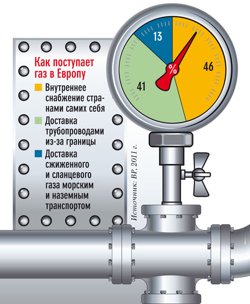 По данным «Газпрома», в течение 2011 года объемы его поставок газа в Европу росли: по сравнению с 2010 годом они увеличились со 138 млрд кубометров до 150 млрд. В то же время общее потребление газа в регионе сократилось на 8%.