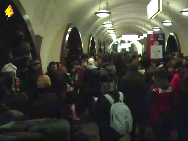 Сотрудники полиции призывали собравшихся не скапливаться на станции и выходить в город.