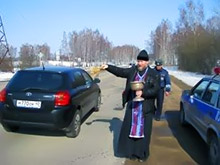 Сотрудники ГИБДД Дзержинского района Калужской области совместно со священнослужителем храма в честь Рождества Христова посёлка Товарково иереем Александром Селюковым организовали необычную акцию - "Безопасность на калужских дорогах". Цель её - напомнить участникам дорожного движения о необходимости соблюдения правил и скоростного режима, сообщает калужская газета "Весть".