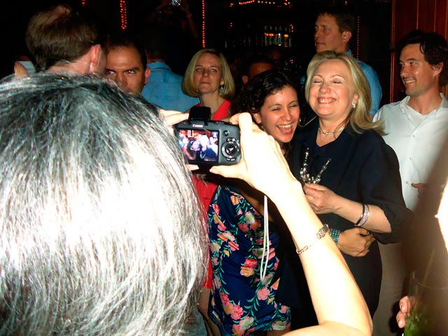 По его словам, сначала госсекретарь заказала в баре лишь воду, но кто-то из ее окружения предложил попробовать местное пиво, что Клинтон охотно и сделала. Через некоторое время одна из самых влиятельных женщин мира уже отплясывала с бутылкой в руках на танцполе под знаменитую кубинскую Guantanamera.