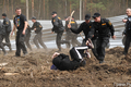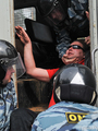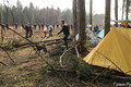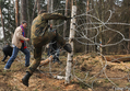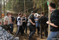 Очередную травму получил видеооператор "Граней" Андрей Новичков - у него сильно подбит глаз. У многих защитников леса синяки и ссадины. У одного из чоповцев разбито лицо, ему вызвали скорую. Приехавшая на место драки полиция задерживает гражданских активистов и журналистов. Около 10 человек были задержаны в лесу, задержания продолжились в городе и на железнодорожной станции "Отдых". По данным полиции, задержаны 36 человек. Среди них участники велопробега против вырубки леса, их велосипеды брошены в лесу. Активисты сели на землю и заблокировали выезд автозака, ОМОН применил силу.