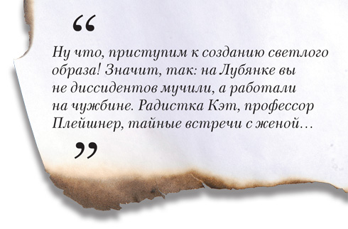 Обхохочешься. Ну что, приступим к созданию светлого образа! Значит, так: на Лубянке вы не диссидентов мучили, а работали на чужбине. Радистка Кэт, профессор Плейшнер, тайные встречи с женой…