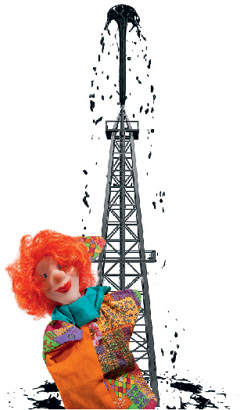 На полу обнаруживается игрушечная нефтяная вышка.Вышечка! Нефтяная! (У кого-то из публики.) Не ваша? Ну, все равно, уже моя. (Берет вышечку.) Так вот, я говорю, Россия встает с колен! Или с коленей?
