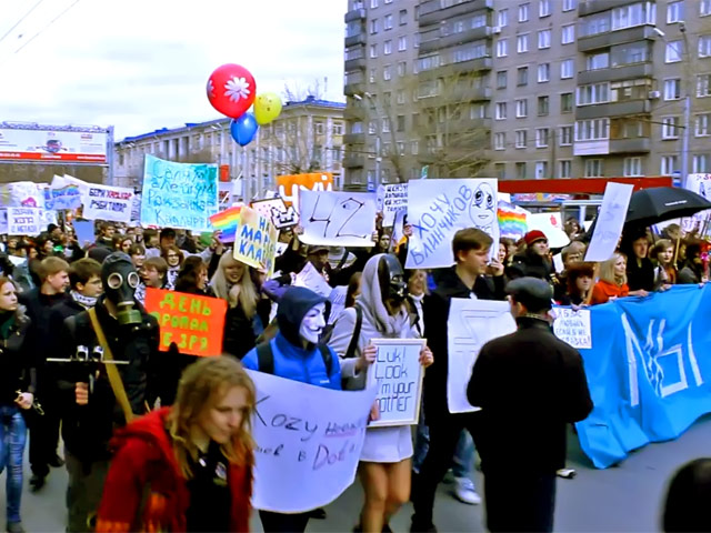 Некоторые из участников шествия несли радужную символику нетрадиционной сексуальной ориентации - протестовали против регионального закона о запрете пропаганды гомосексуализма, принятого на днях Законодательным собранием Новосибирской области, сообщает местная "Комсомольская правда".