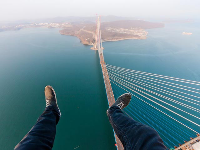 Москвичи Виталий Раскалов, Кирилл В. и их друг из Владивостока нелегально забрались на пилоны обоих мостов, строящихся в столице Приморья. О своих похождениях они рассказали в социальных сетях, приложив в качестве доказательств фотографии с высоты пилонов, сообщают "Новости Владивостока".