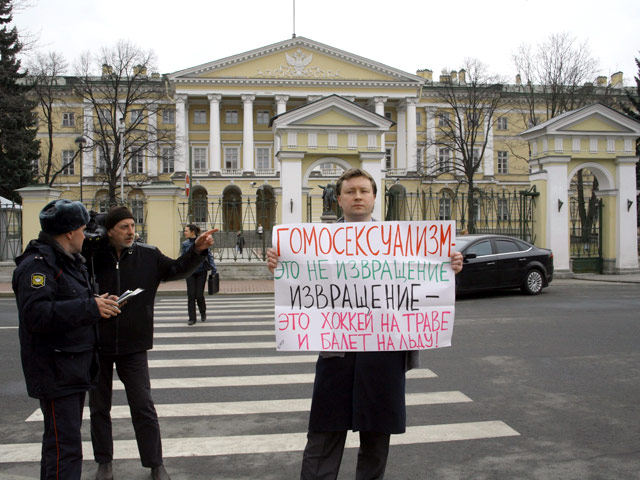 Таким образом, петербургский суд впервые назначил наказание за нарушение нового городского закона о запрете пропаганды гомосексуализма и педофилии среди несовершеннолетних, передает РИА "Новости".