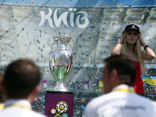 Также сообщалось, что двое молодых людей, фотографируясь рядом с трофеем будущего победителя ЧЕ-2012, развернули плакат синего цвета, "завернули в него "добычу" и попытались скрыться". Злоумышленников задержала охрана, а сам трофей вернулся на прежнее место.