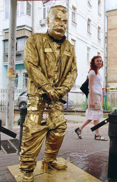 Слили вождя Украинские националисты сделали «подарок» украинским коммунистам: сразу в нескольких городах страны установили позолоченные статуи писающего Сталина — по образу и подобию знаменитого брюссельского «Писающего мальчика». Коммунисты восприняли это как хулиганство и политическую провокацию, а националисты говорят, что так они выразили протест против празднования Дня Победы над фашизмом. Как утверждают информагентства, правые радикалы относятся к этому празднику, как к наследию «советского империализма».