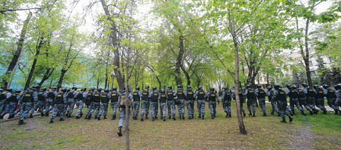 Плотные ряды ОМОНа, военных, техники на мостах, ведущих к Кремлю… Остервенение спецназа, с дубинками гоняющегося за демонстрантами… Вымершая Москва, когда по ней из Белого дома в Кремль летел кортеж… Обиженное, неулыбающееся лицо гаранта Конституции, принимающего присягу, и его же озлобленное — в Государственной думе… Кем ощущает себя Путин? Мессией, призванным спасти Россию? Но — от кого? От собственного народа? Помазанником божьим на земле? Правой рукой Создателя, которого дÓлжно только обожать? Неужели он всерьез думает, что десятки тысяч человек, отнюдь не только москвичи — на «Марше миллионов» по Якиманке и Болотной шли и кричали «Россия без Путина!» люди из Петербурга, Рязани, Ульяновска, Иркутска, Мурманска, других городов страны — все они проплачены «госдепом»? Их снимали с автобусов, задерживали в поездах и на вокзалах — они пробирались в столицу на перекладных. Добрались и — увидели оккупированную военными Москву.