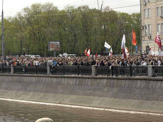Кроме того, был прекращен доступ участников демонстрации на митинг "посредством выставления полицейского оцепления на Болотной площади в районе Лужкова моста".