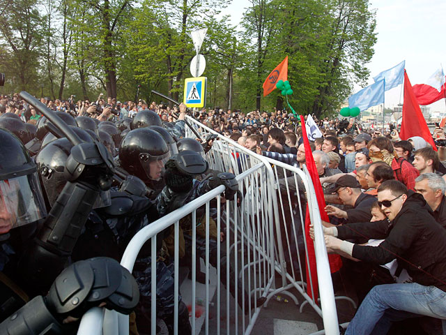 Напомним, 6 мая в Москве прошла акция оппозиции "Марш миллионов", которая завершилась провокациями, столкновениями протестующих с полицией, десятками пострадавших с обеих сторон и массовыми (более 450 человек) задержаниями.