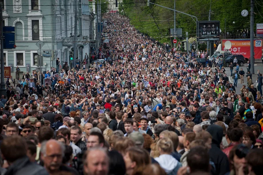 Люди, которые чисто теоретически были главными героями шествия — Улицкая, Быков, Акунин, Макаревич, — не могли не то что идти вместе, а пообщаться друг с другом, потому что, как только двое из них видели друг друга и на мгновение останавливались, то вокруг тут же начиналась вот эта самая кристаллизация, и они оказывались по две разные стороны двух плотных кругов, и при этом без всякого руководства все прекрасно дошли и никаких провокаций не было.