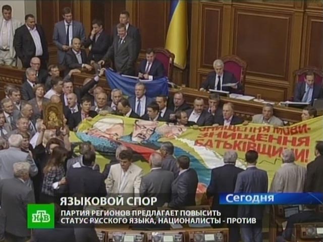 NEWSru.Ua напоминает, что в конце августа 2011 в Верховной Раде был зарегистрирован законопроект "О принципах государственной языковой политики", разработанный депутатами фракции Партии регионов Сергеем Киваловым и Вадимом Колесниченко. Документ предлагает предоставить статус регионального русскому языку в 13 регионах Украины, где русский является родным для, как минимум, 10% населения.