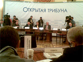 Встреча состоялась, но не прошло и полутора часов с начала беседы, как гости начали покидать зал, и в считанные минут модератор встречи – вице-спикер Государственной думы единоросс Олег Морозов - остался за опустевшим столом.
