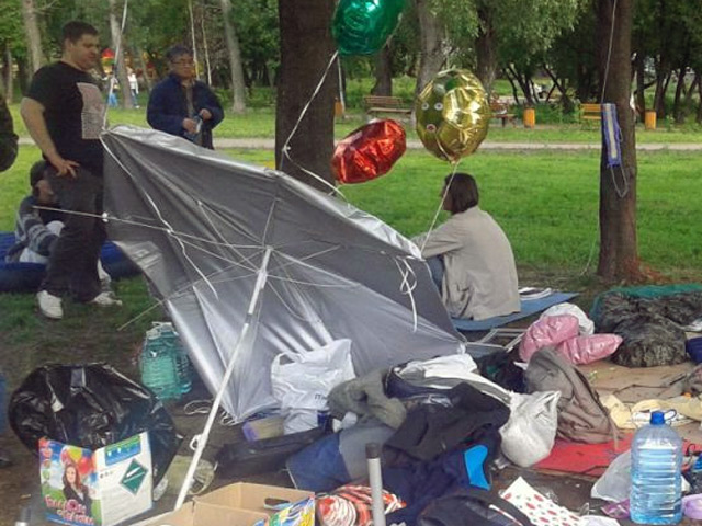 Оппозиционный лагерь у Мосгорсуда разгромили неизвестные (ВИДЕО)