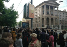 Возле здания московского главка МВД на Петровке, 38 прошли задержания участников акции "ОккупайМУР". Активисты пришли поддержать 18-летнюю Александру Духанину, задержанную по делу о беспорядках на Болотной площади. Она содержится в изоляторе на Петровке. Среди задержанных - корреспондент Граней.Ру Андрей Новичков, который вел видеосъемку. Ему сообщили, что он задержан за переход улицы в неположенном месте.