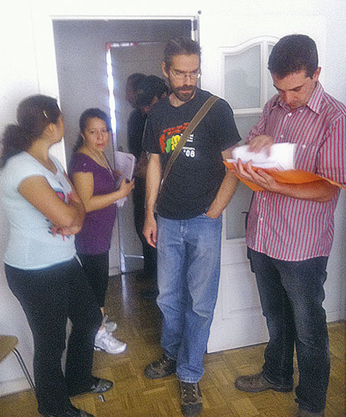 Активисты «Ассоциации жертв ипотеки» помогают отстоять квартиру семье Соледад Рамирес: группа поддержки под окнами...